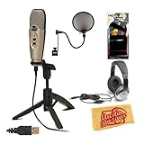 CAD U37 USB Studio Recording Microphone Bundle with Headphones, Velcro Cable Ties, Pop Filter, and Polishing Cloth