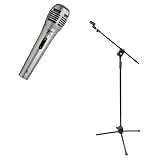 Pyle Mic and Stand Package - PDMIK1 Professional Moving Coil Dynamic Handheld Microphone - PMKS3 Tripod Microphone Stand W/ Extending Boom