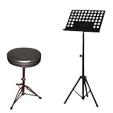 Pyle Music Note Stand and Stool Package - PMS1 Heavy Duty Tripod Music Note Stand - PKST50 Double Braced Folding Padded Drum Throne - Keyboard Bench - Guitar Stool